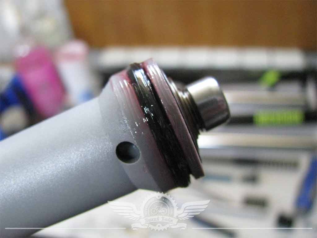 Запрессовываю сальники и наношу Sram Butter на внутреннюю часть. Вам может показаться, что смазки много, но это кажется. Распределяю смазку по всему сальнику. Да, обратите внимание, что в XC28 нет поролоновых колец, которые пропитаны маслом.