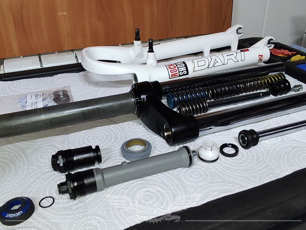 6-11-2023, 17:27 710 ФотоотчетыРемонт и переборка очень старенькой вилки Rockshox Dart 3 с заменой расходников (оринги, пыльники, масло и винты с шайбами), демпфера отскока и направляющей демпфера. Поводом к переборке послужила неработающая блокировка вилки. А причиной — отсутствие обслуживания.